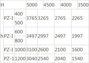 1、水泵房底板標(biāo)高和水倉(cāng)(或配水巷)入口標(biāo)高之高差H與連接桿長(zhǎng)度h值,本設(shè)計(jì)考慮四種情況,如下表所示:(單位:毫米)